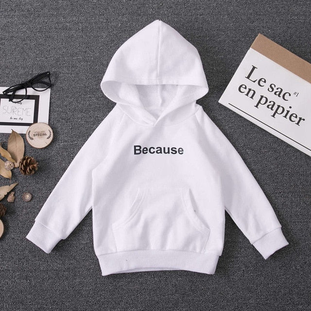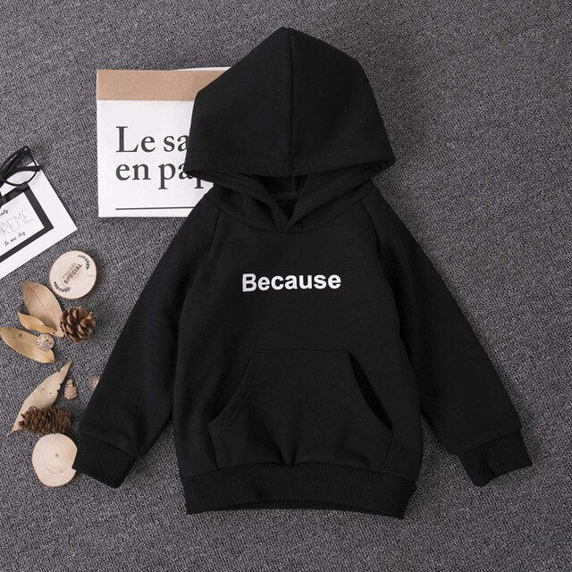 Fashion Kids Hoodies White/Black Tops Coat Cotton Boys Hoodie Letter Because Print Sweatshirt Girl Teenage School Clothing 2-18Y